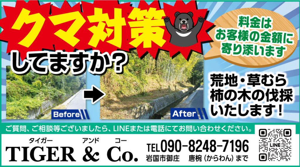 クマの被害対策の一つとして、荒地・草むら・柿の木の伐採が有効!!
