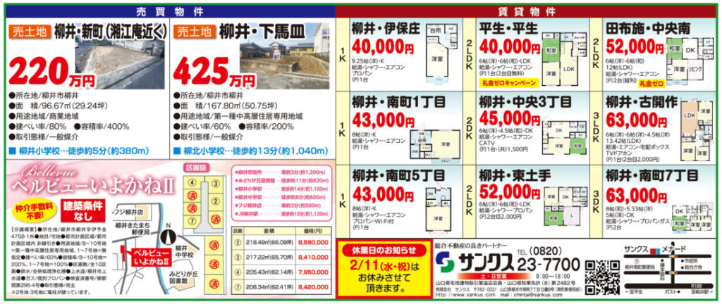 こちらは、柳井中学校、柳井小学校、みどりが丘図書館が徒歩圏内!