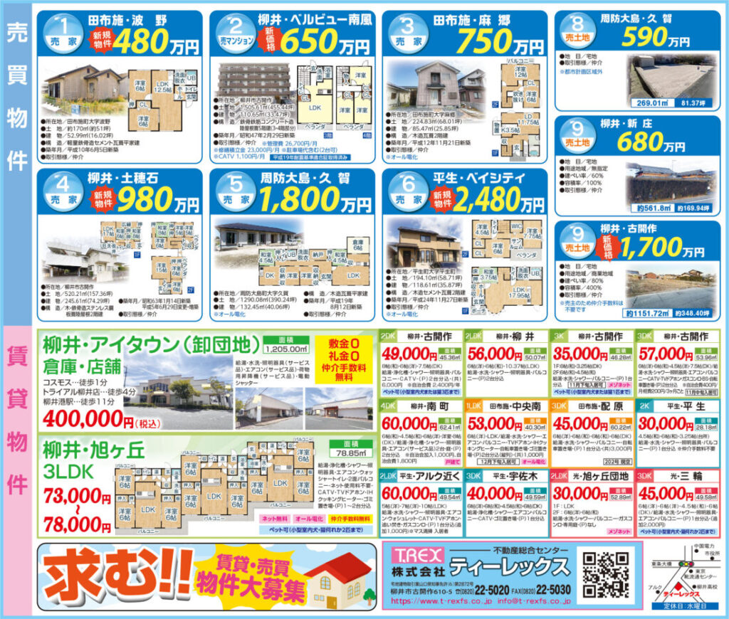 賃貸物件もたくさん掲載されています。詳しく知りたい方はティーレックスさんまでお問い合わせを!