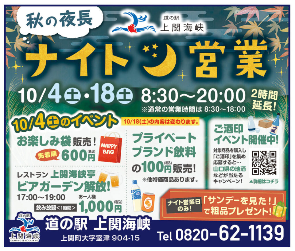 道の駅 上関海峡さんでは、この度、「ナイト営業」をするそうです!