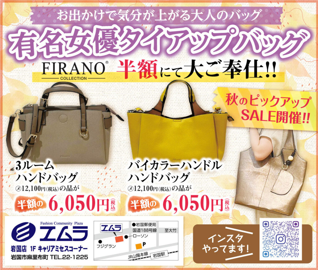 有名女優タイアップバッグ「FIRANO」を半額にて大奉仕!!