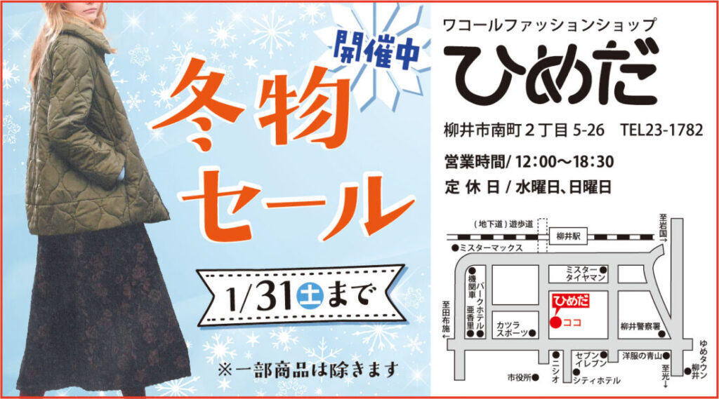 冬物セールは1/31まで!:ひめだ