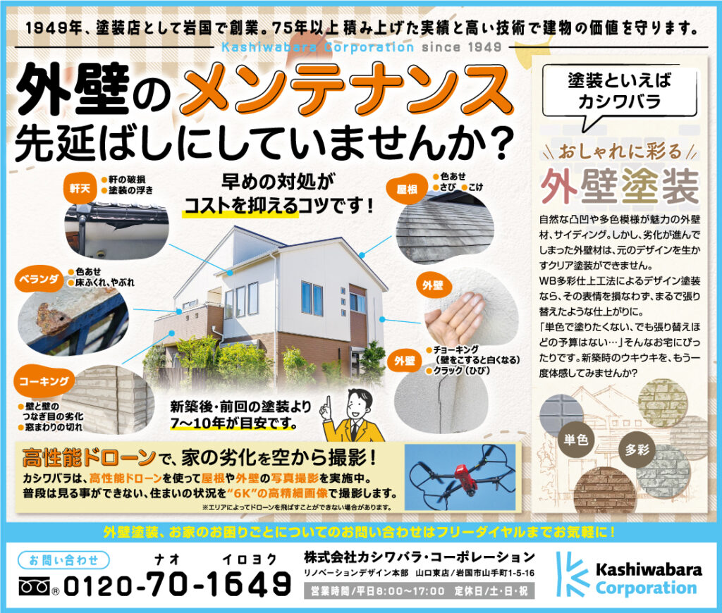 塗装店として岩国で創業。75年以上の高い実績を持つカシワバラさん。