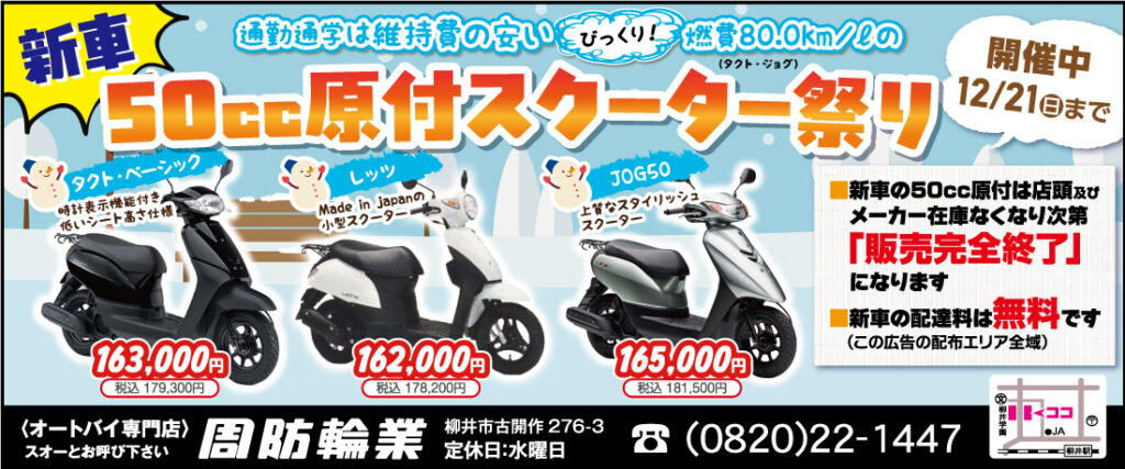 この機会に新車の50ccをぜひ周防輪業さんで!