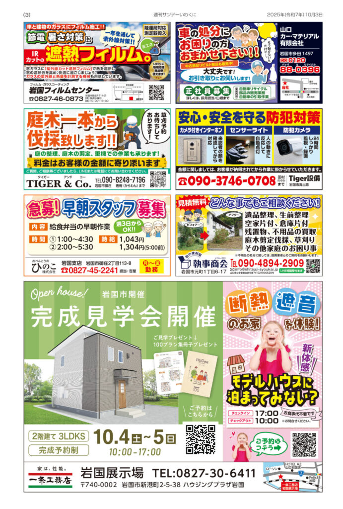 「サンデーいわくに3面」掲載の【一条工務店さん】では、完成見学会を開催!!
