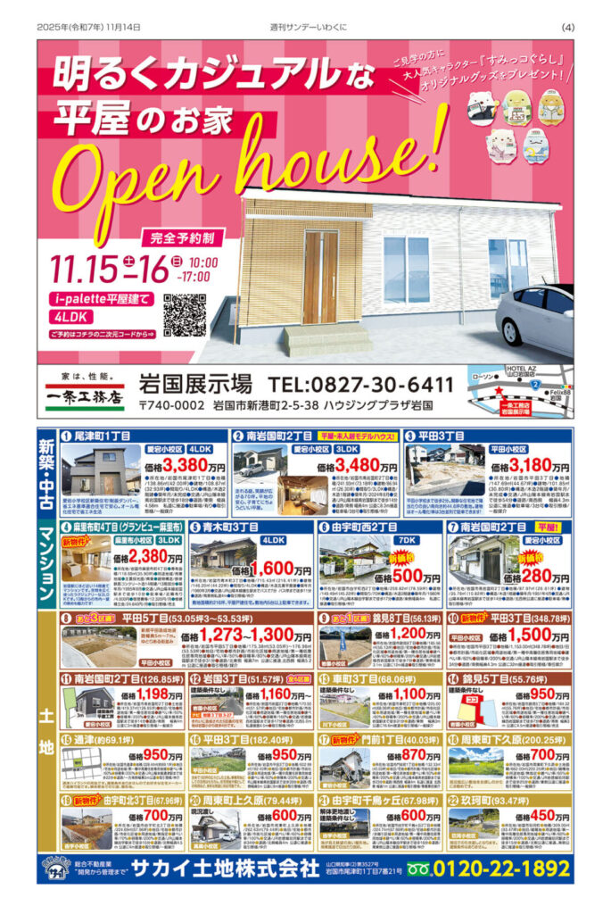 「サンデーいわくに4面」では、【一条工務店 岩国展示場さん】を掲載!