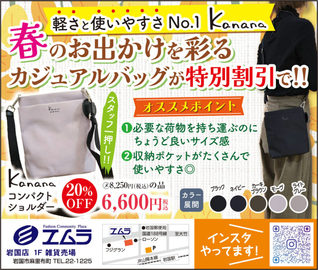 軽くて使いやすい!春のお出掛けにぴったりな「カジュアルバッグ」が今なら特別割引価格で販売ですよ📣