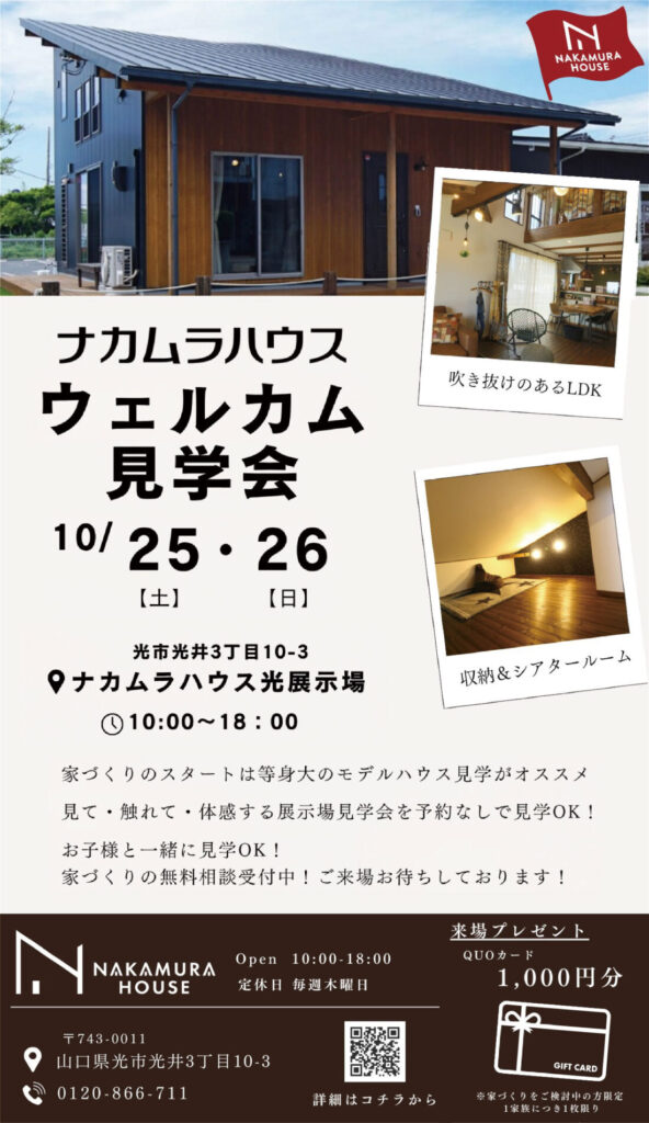 【場 所】ナカムラハウス光展示場(光市光井3丁目10-3)