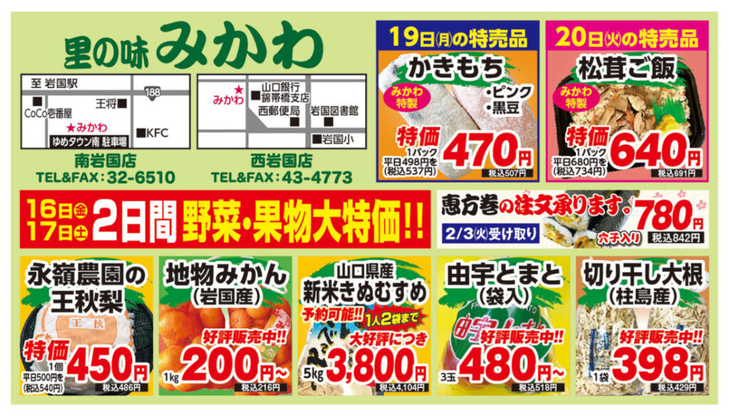 その他にも、由宇トマトや地物みかん(岩国産)が好評販売中😊✨