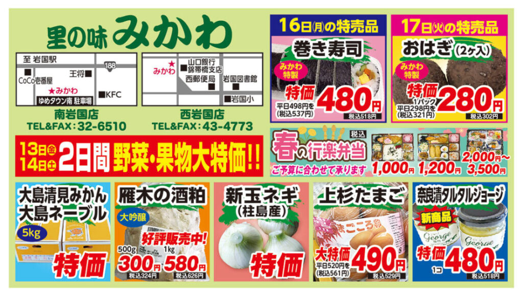 南岩国店:TEL 0827-32-6510