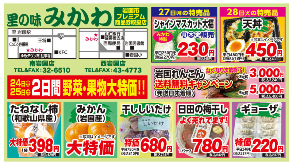 24日(金)・25日(土)の2日間、野菜・果物大特価!