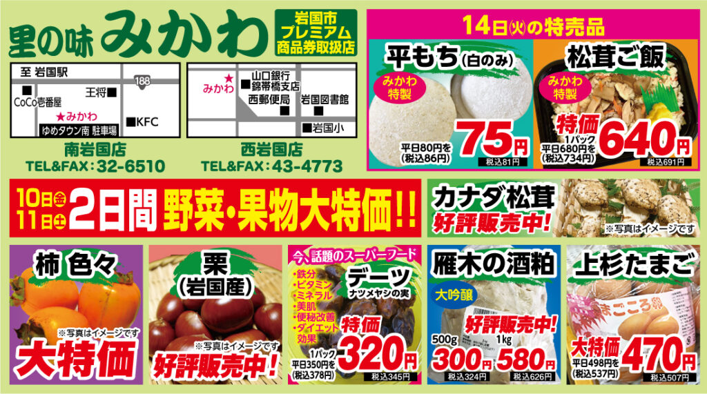10月10日(金)と10月11日(土)の2日間は野菜・果物が大特価!