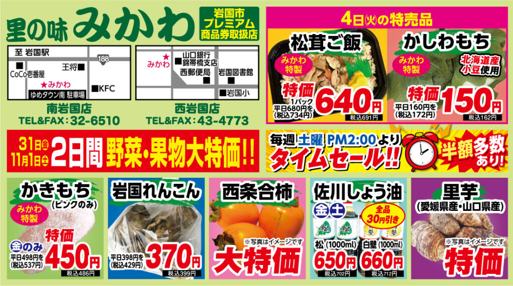 10月31日(金)と11月1日(土)の2日間は野菜・果物が大特価!