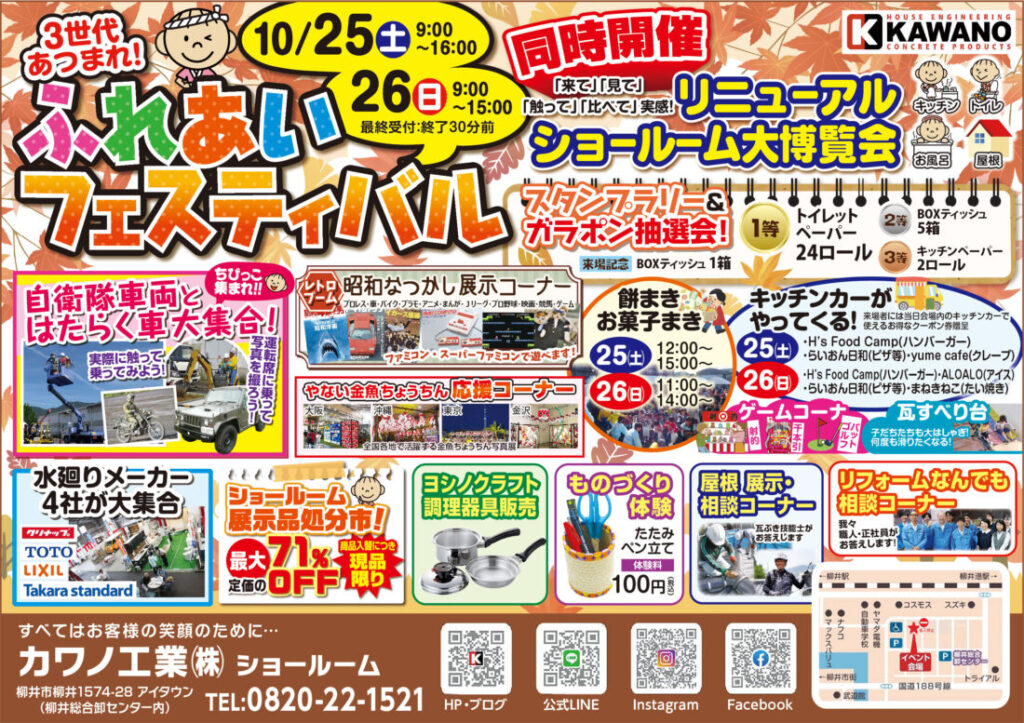 カワノ工業にて、年に一度の大イベント『ふれあいフェスティバル』&同時開催『リニューアルショールーム大博覧会』を開催いたします✨