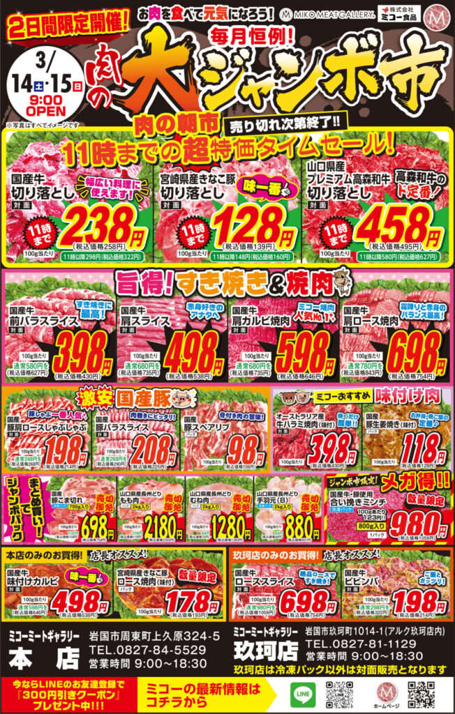 3月14日(土)・15日(日)は『肉の大ジャンボ市』:ミコー食品